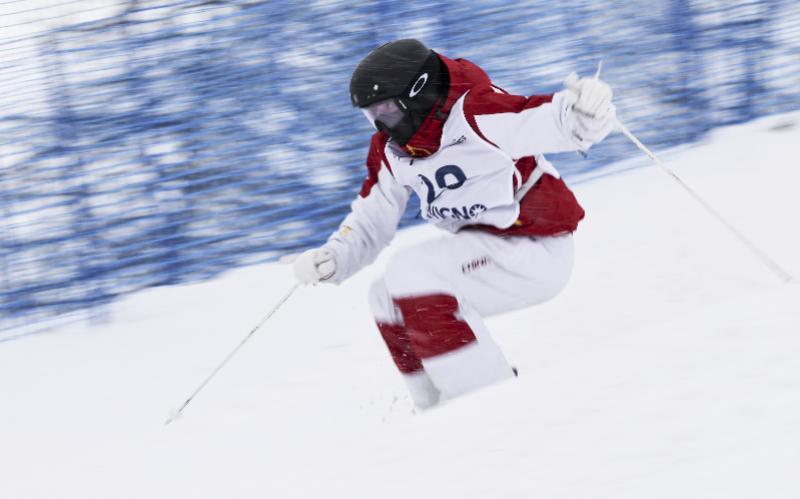 2025年3月12日,黎睿霖在国际雪联自由式滑雪世界杯(利维尼奥站)女子双人雪上技巧比赛中。新华社发